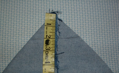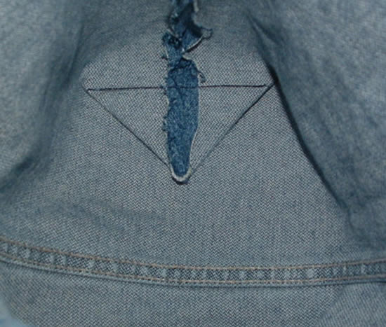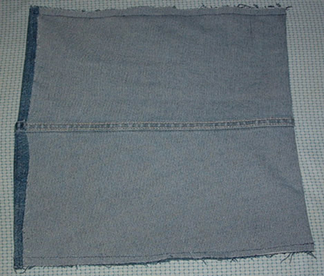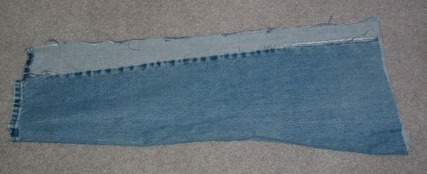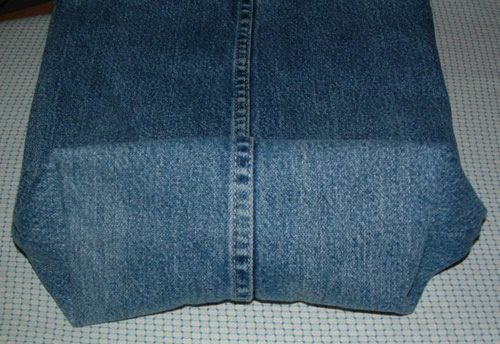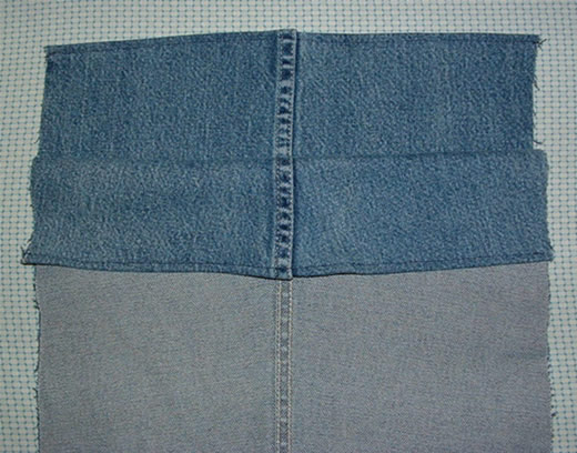 Denim edge pinned on inside as shown. Sew down folded hem.