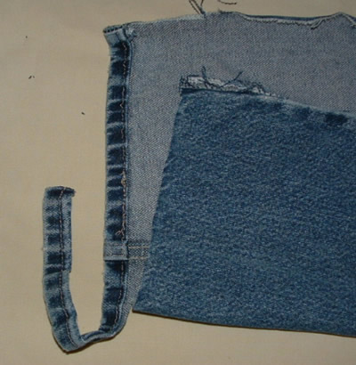 Top edge sewn and ready for side seams. Make sure you use a heavy-duty denim sewing machine needle.