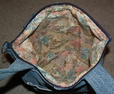 Here is a view from inside the bag as you sew the lining in. I hand-stitched the lining to the bag edge.