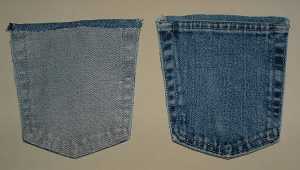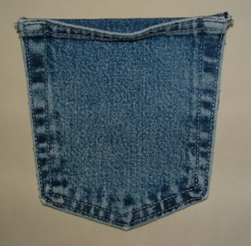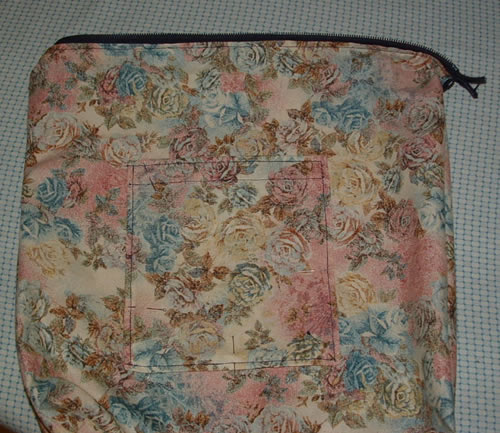 Outside pocket that I stitched in place on the denim bag shell. I machine sewed this in place over the existing top-stitching on pocket.