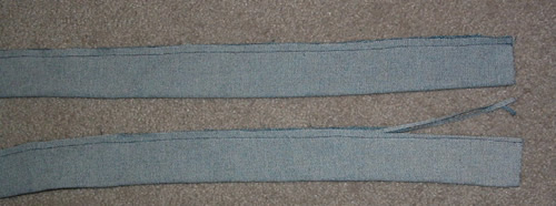 Here are the straps sewn and turned right side out. I then top-stitched along the both edges on the straps.