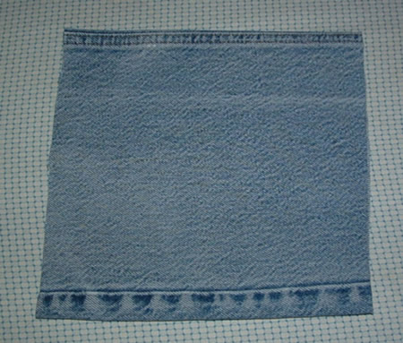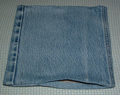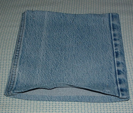 Cut a piece of denim from an old pair of jeans about 9 inches long with the leg seams intact. If your pant leg is too wide, just sew a seam down each side to make the denim shell as shown.