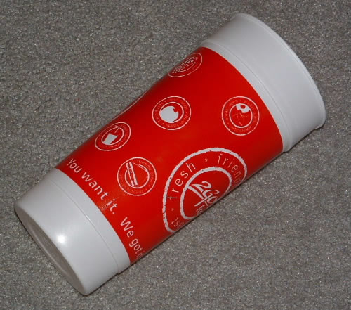 I have had several requests for recycled crafts projects that kids can do. With that in mind, here is a quick upcycle project that children and adults can both enjoy. First you need a large plastic container. The container I used was a 64 oz. soda pop cup that I found and decided that I would re-purpose into a plastic bag keeper.