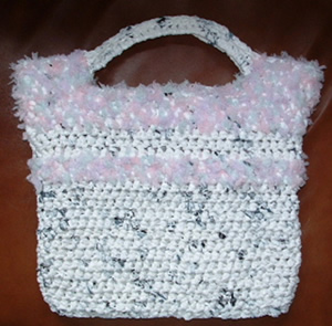 So take heart if you have lots of white plastic bags. You can upcycle them into some really cute crochet projects by just adding some ribbon, fun fur, or other embellishments. Here is the link to my free clothespin “peg” bag pattern if you’d like to crochet this project. Also you can browse through all my free patterns at this link.