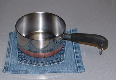 Need a potholder to go along with your oven mitt? You can add a denim potholder that sports a pocket from a pair of jeans to create a cool recycled denim kitchen set.