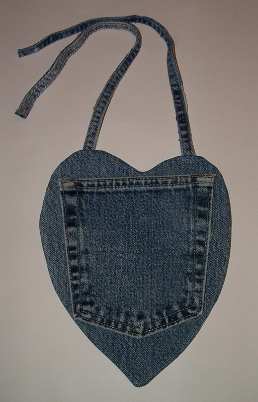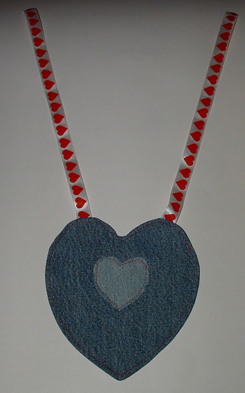 Below you will find a picture tutorial showing how I made each of these recycled denim heart bibs.