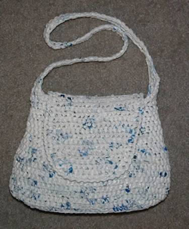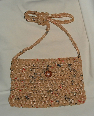 My blog friend Nan, owner of Nannybird.blogspot.com, created this great purse design and which I finally was able to crochet using her pattern. The purse is crocheted using recycled plastic bags or plarn. In case you are new to the term plarn, here is the link to my picture tutorial on how to create yarn from recycled plastic bags.