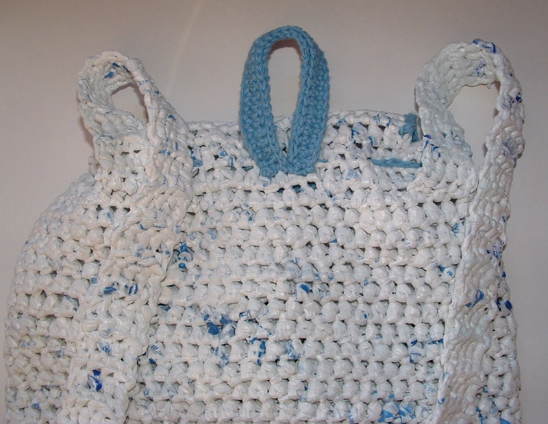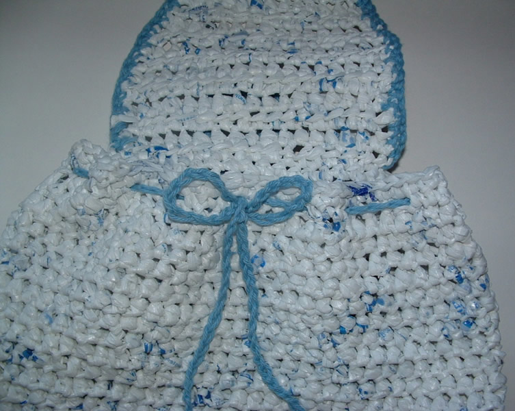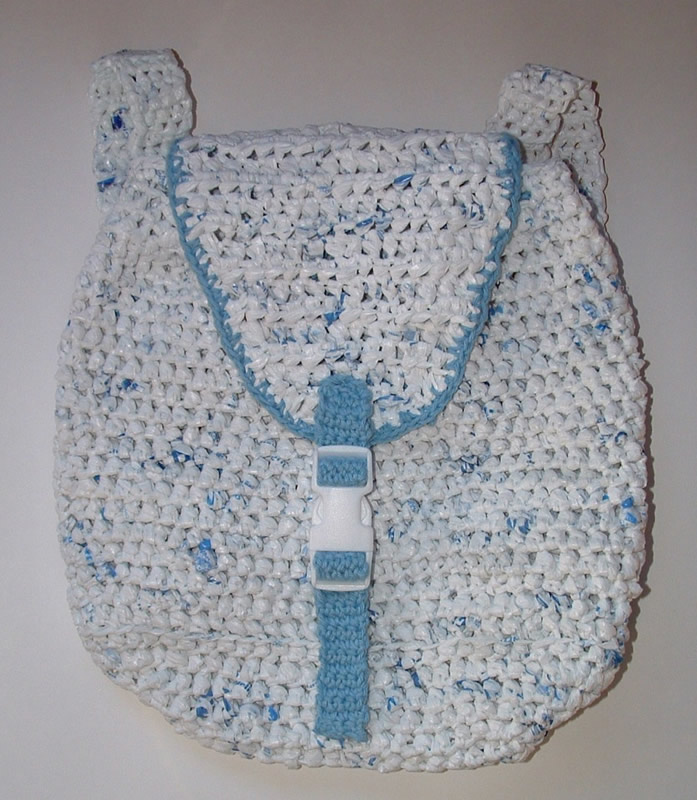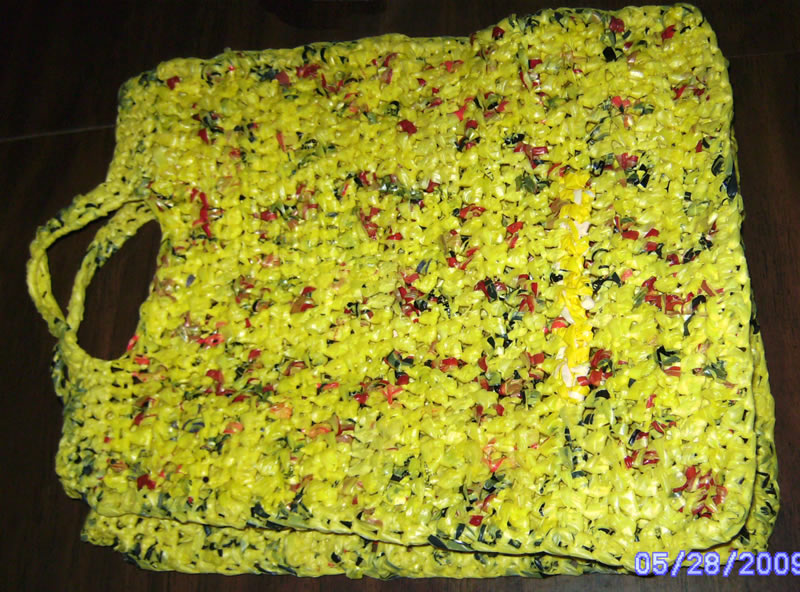 I want to share some of my readers creations that have been emailed to me. Several of my crafty readers have sent me photos of their completed plarn (plastic bag yarn), VCR, and cassette tape recycled bags. I just love seeing everyone’s finished projects and hope you enjoy them too. Click on any of the photos to supersize them.